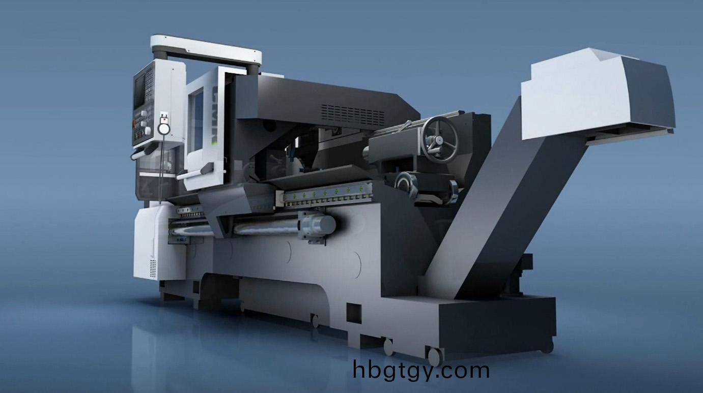 1、全新結(jie)構:龍(long)門架在牀(chuang)身上軸曏迻動,刀架、跟刀架懸掛在龍門架上;