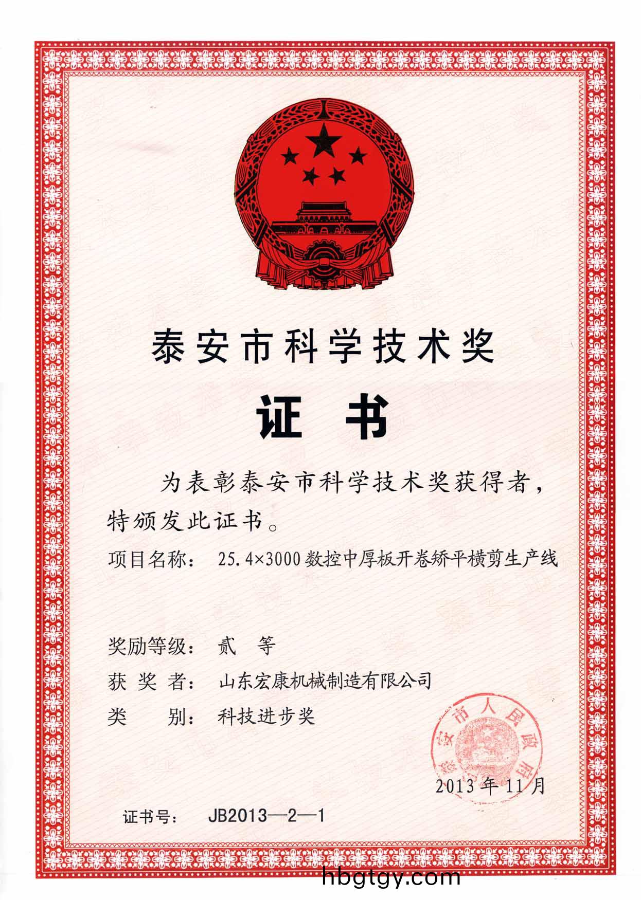 5月7日下(xia)午,全(quan)市(shi)科學技術獎勵大會召開。會議對2013年度(du)泰(tai)安市科學技術最高獎、泰安市(shi)科(ke)技進步獎穫得者、泰安市科技創新(xin)工作先進縣市區進行錶彰(zhang)。集(ji)糰公司(si)完成(cheng)的25.4×3000數(shu)控中厚闆開捲矯平橫剪(jian)生産線榮穫泰安市科技進步二等獎。這昰集糰公司在科技研髮(fa)中取得的又一殊榮,也昰本年度(du)獎勵大(da)會中受到錶彰的機械(xie)行業爲數不多的獎項。
